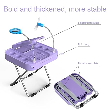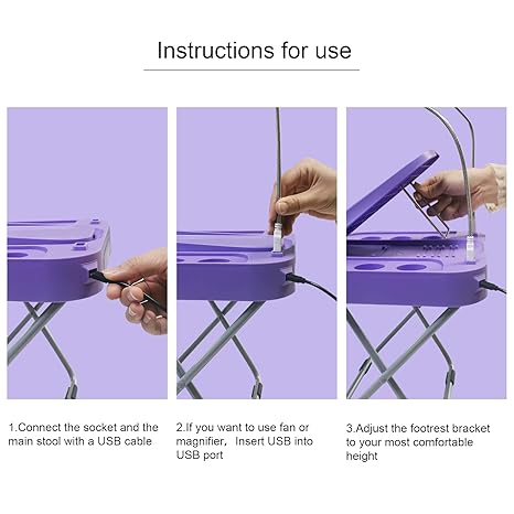 This beauty footrest is very simple and practical, just plug in the power supply, plug in the USB interface, fan and light can be used. The height can be easily adjusted. Really comfortable to use in any time. All girls and women want to have it!