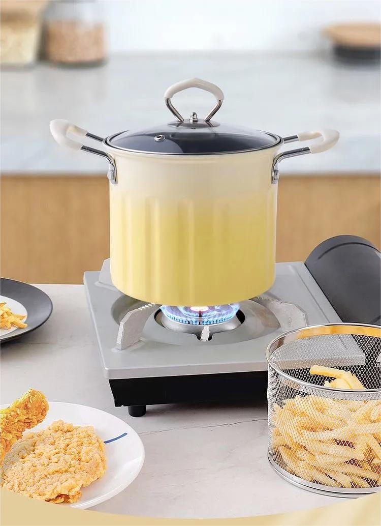 Say goodbye to oil burns and spills! Our Multipurpose Fryer Pot features a non-stick surface, added depth, and a stainless steel strainer for easy deep frying, boiling, or blanching. Suitable for induction and traditional cooking, it saves oil and ensures even cooking.