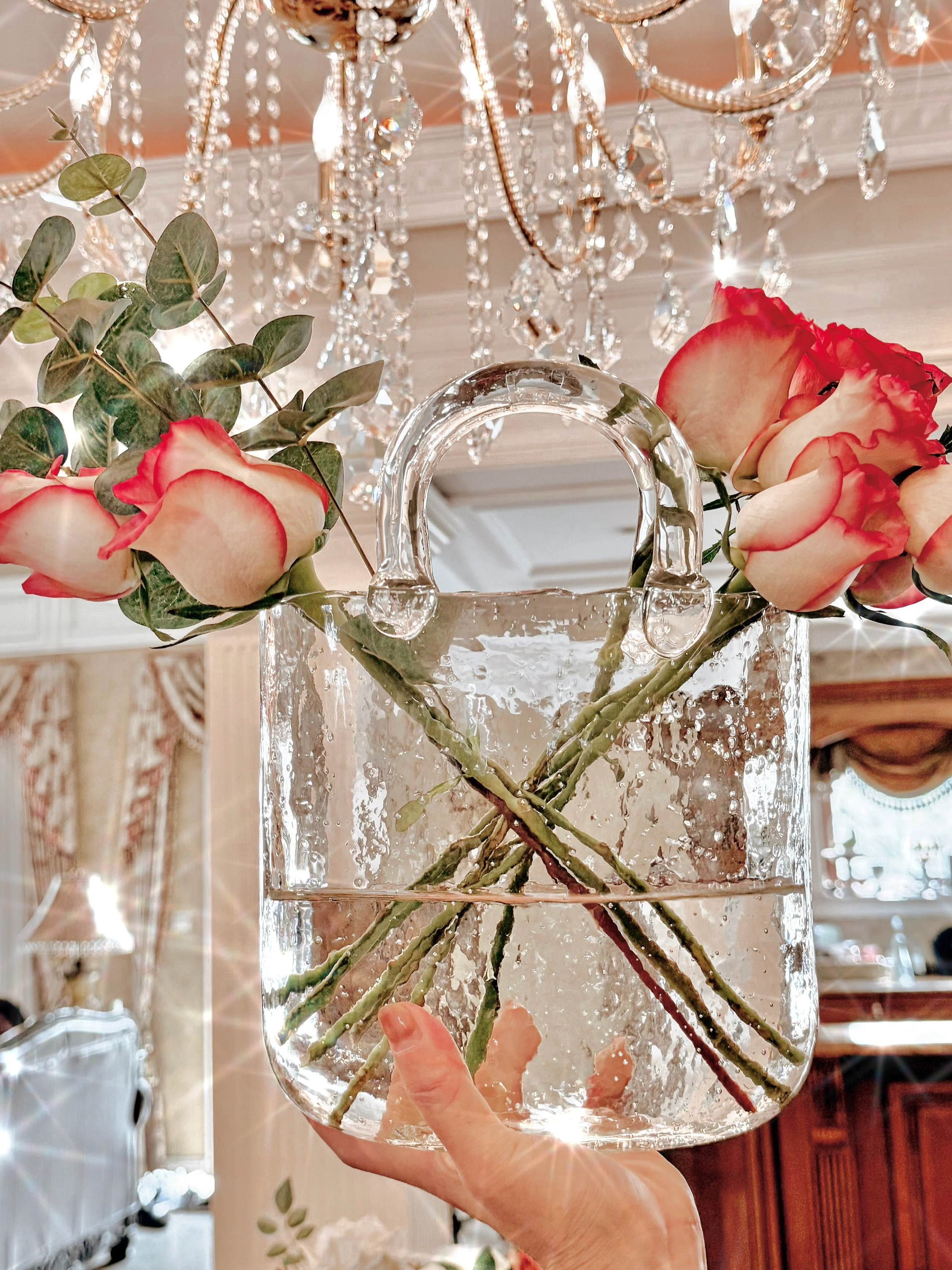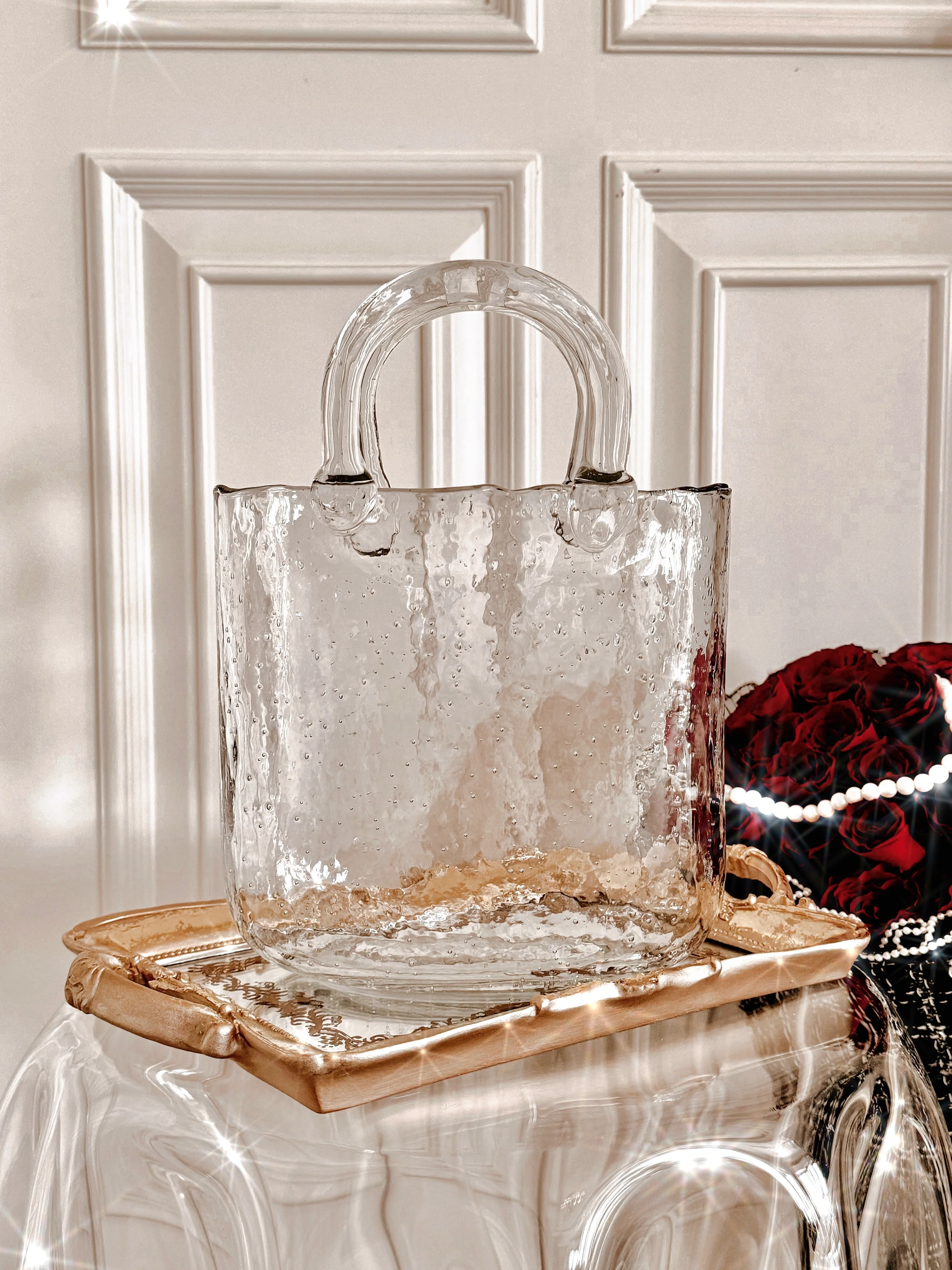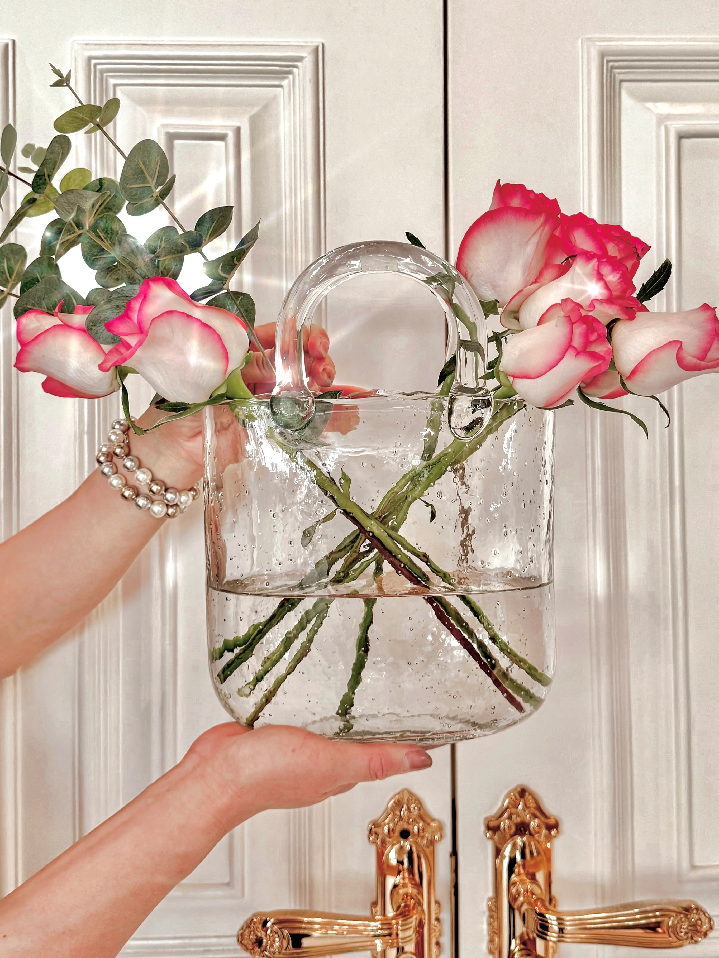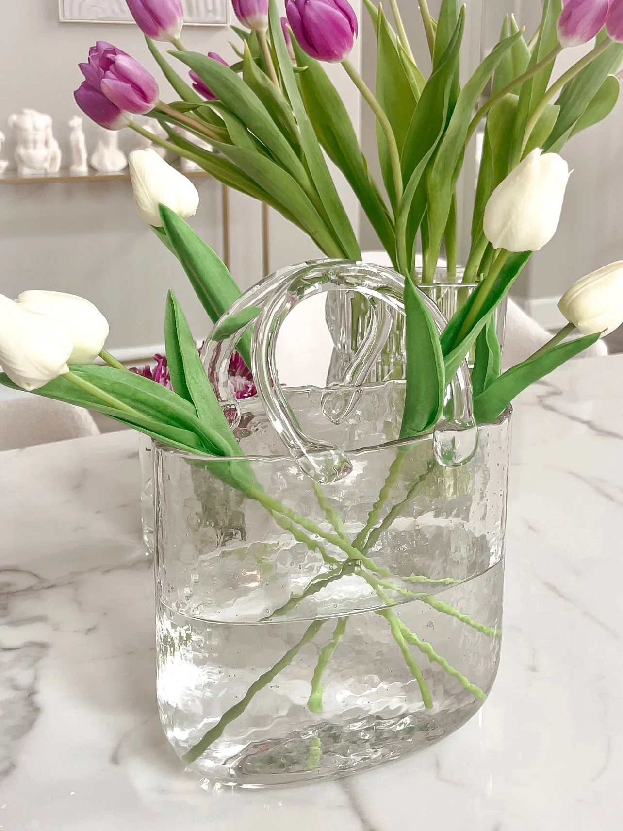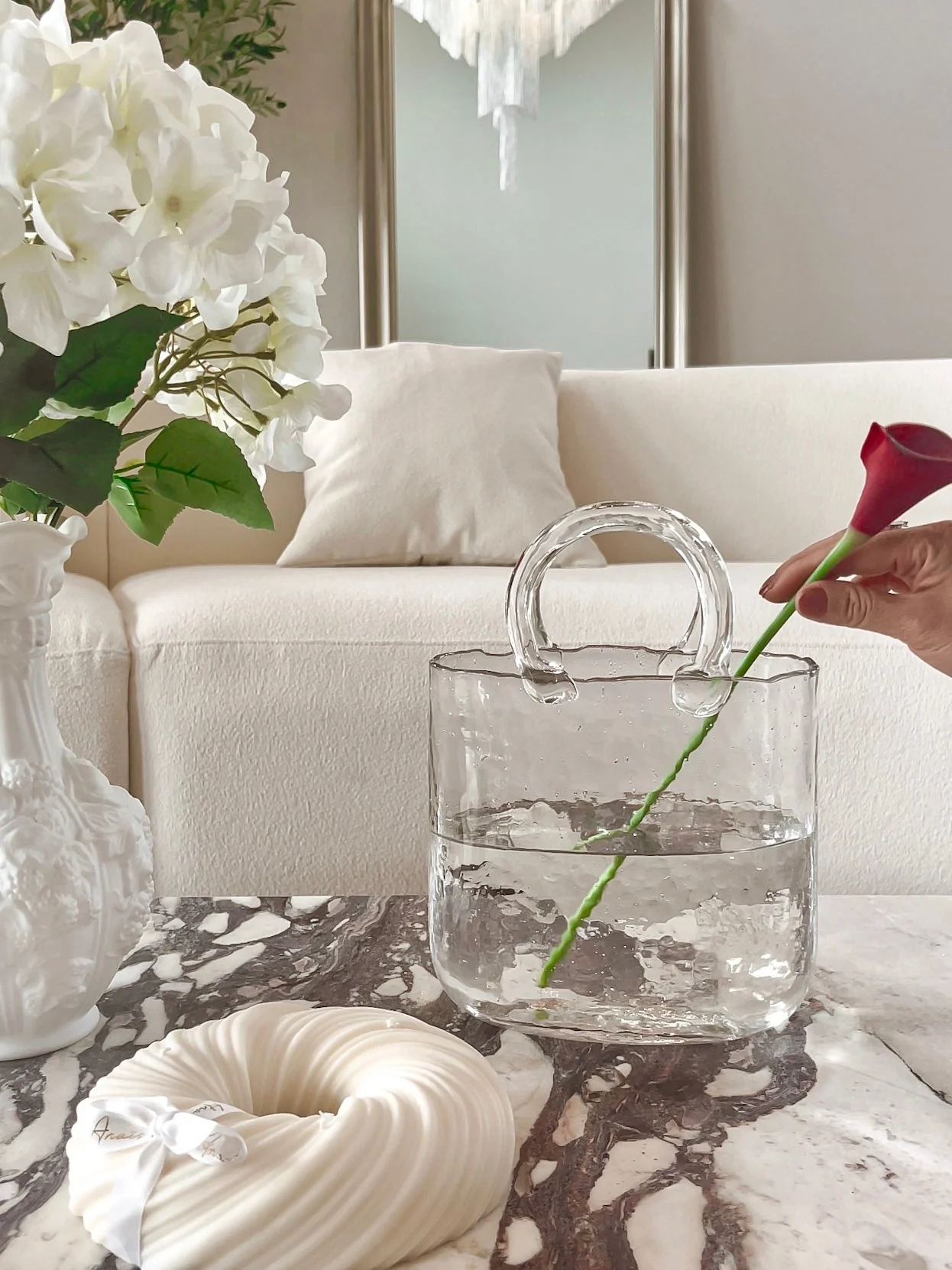 Olivia Glass Handbag Vase is back in stock and better than ever! This viral vase instantly elevates your space with its sleek, eye-catching shape - the perfect fusion of fashion and flowers.