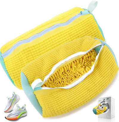 - 👟Fluffy fiber lining: The shoe washing bag is lined with chenille microfibers. The soft fibers clean your shoes 360° and provide a thorough and gentle cleaning. Say goodbye to damaged or scratched shoes when washing and drying.